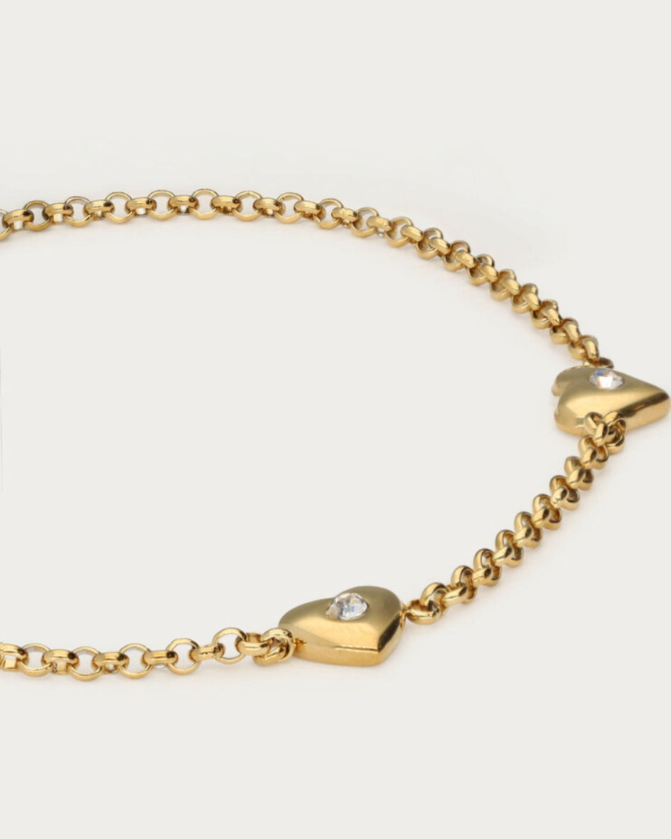 Ein schönes Herzarmband als tolle Geschenkidee - die Herzen sind mit Strasssteinen besetzt.