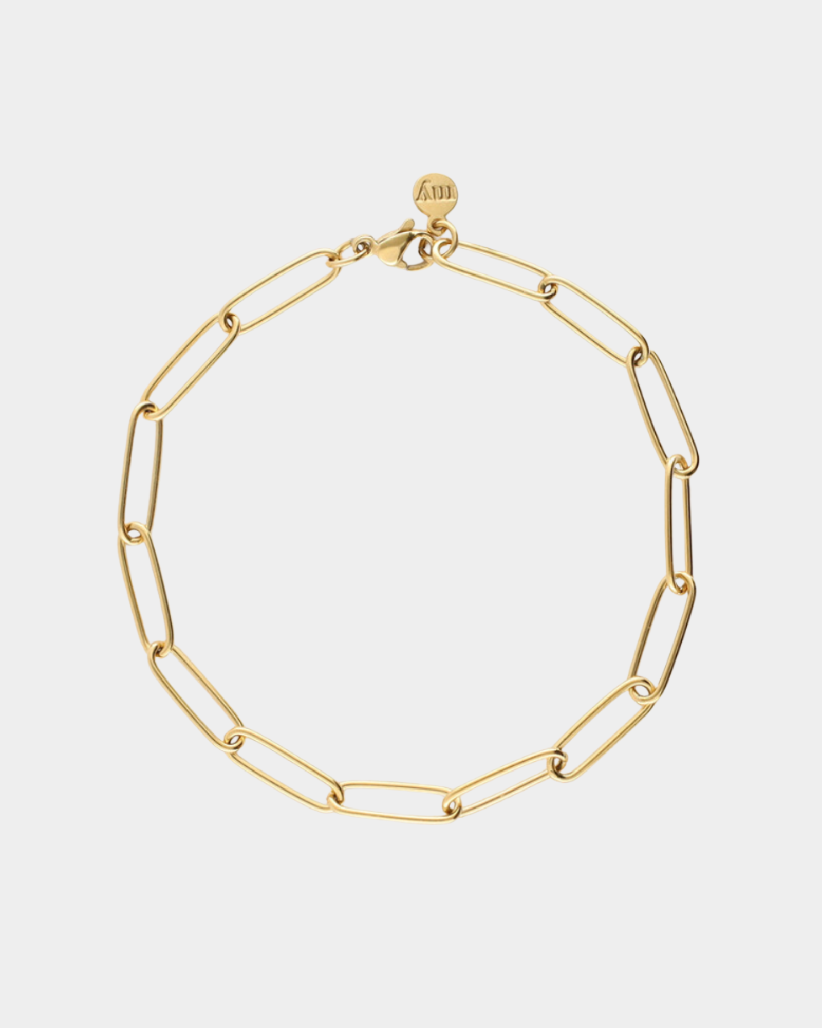 Ein modernes Armband mit länglichen Gliedern, das zu jedem Outfit super passend ist und gerne mit Anhängern verziert werden darf.